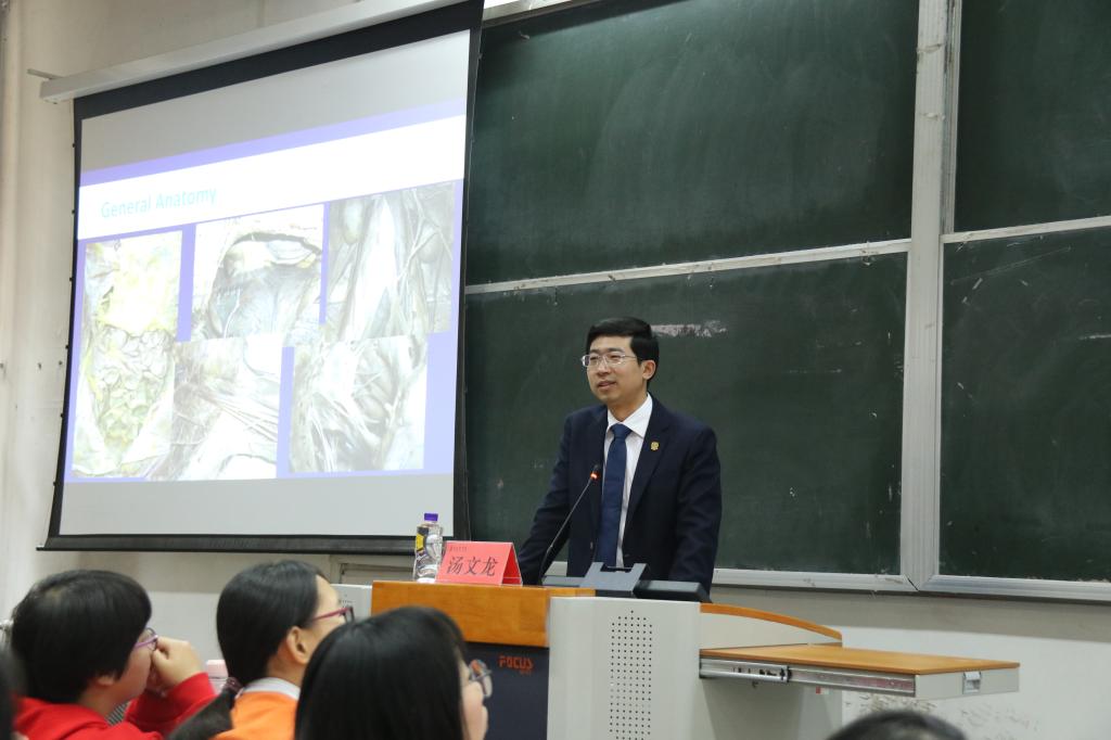 11月6日下午,“杰出校友返校捐课”活动在校本部南区11阶梯教室举办,我校2007级优秀校友汤文龙作了题为“我与颅脑解剖的不解之缘——记一名长医人的医学成长之路”专题讲座。党委(院长)办公室主任王黎刚、校友办工作人员、在校学生200余人到场聆听。讲座由党委(院长)办公室副主任王科峰主持。
