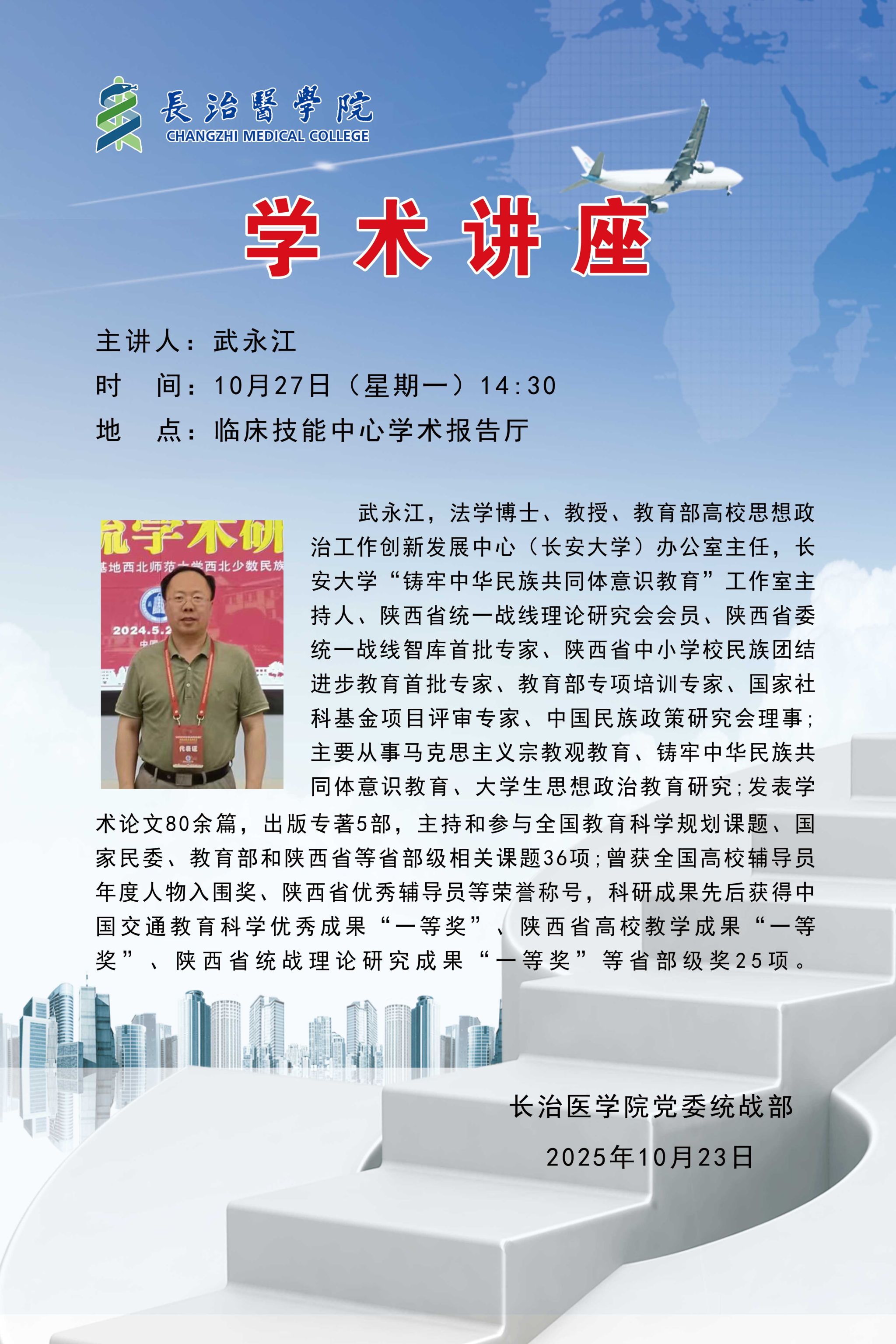武永江,法学博士、教授、教育部高校思想政治工作创新发展中心(长安大学)办公室主任,长安大学“铸牢中华民族共同体意识教育”工作室主持人、陕西省统一战线理论研究会会员、陕西省委统一战线智库首批专家、陕西省中小学校民族团结进步教育首批专家、教育部专项培训专家、国家社科基金项目评审专家、中国民族政策研究会理事;主要从事马克思主义宗教观教育、铸牢中华民族共同体意识教育、大学生思想政治教育研究;发表学术论文80余篇,出版专著5部,主持和参与全国教育科学规划课题、国家民委、教育部和陕西省等省部级相关课题36项;曾获全国高校辅导员年度人物入围奖、陕西省优秀辅导员等荣誉称号,科研成果先后获得中国交通教育科学优秀成果“一等奖”、陕西省高校教学成果“一等奖”、陕西省统战理论研究成果“一等奖”等省部级奖25项。