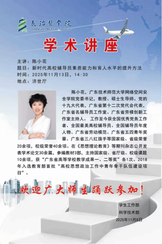 陈小花,广东技术师范大学网络空间安全学院党委书记,教授、硕士生导师。党的十九大代表,广东省第十二次党代会代表,广东省名辅导员工作室、广东省劳模创新工作室主持人。工作至今获全国优秀党务工作者、全国最美高校辅导员、全国辅导员年度人物、广东省劳动模范、广东省五四青年奖章、广东省三八红旗手等国家级、省级荣誉20余项,校级荣誉40余项。在《思想理论教育》等期刊杂志公开发表学术论文30余篇,参编教材3部,主持国家级、省厅级、校级课题10余项,获“广东省高等学校教学成果一、二等奖”各1次。2018年入选教育部首批“高校思想政治工作中青年骨干队伍建设项目”。