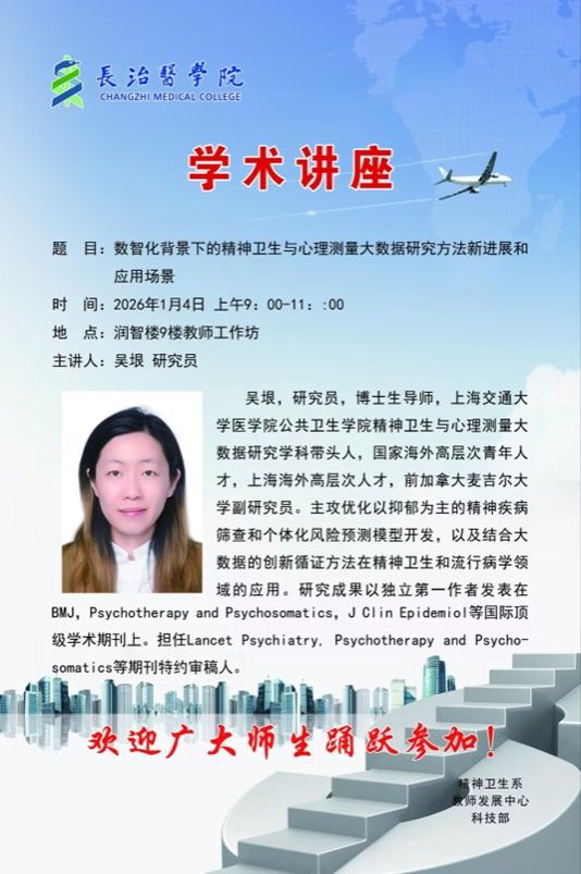 题 目:数智化背景下的精神卫生与心理测量大数据研究方法新进展和应用场景